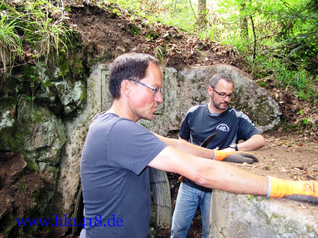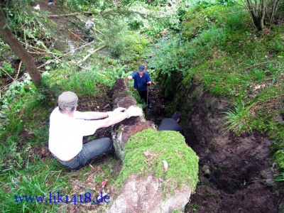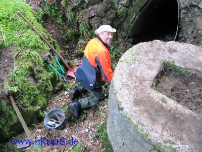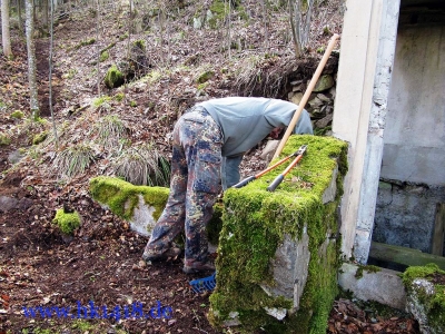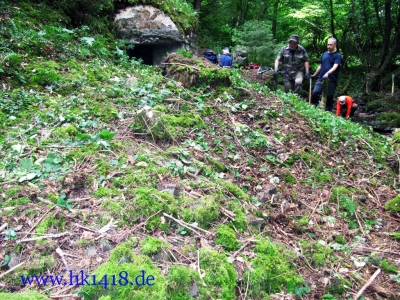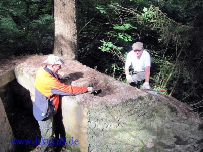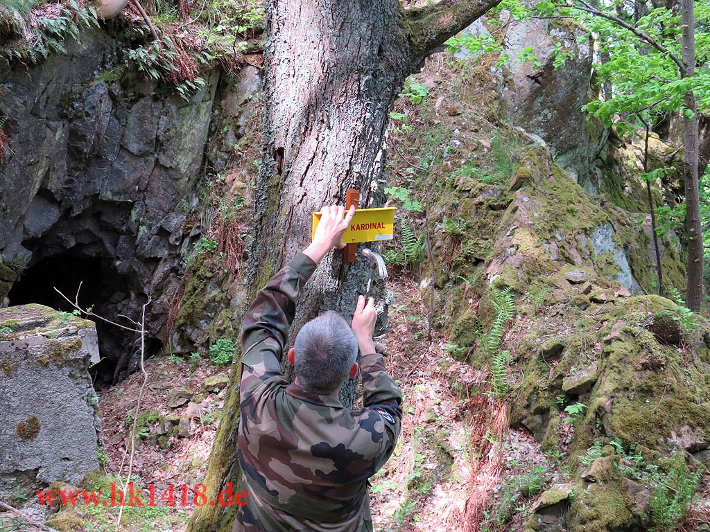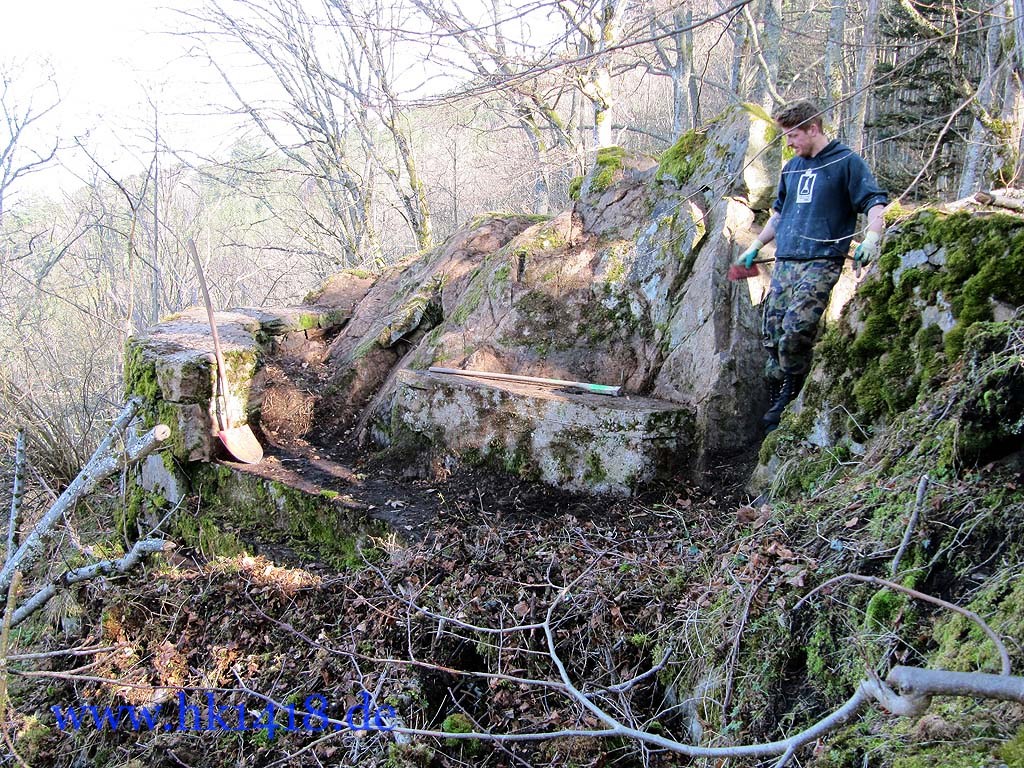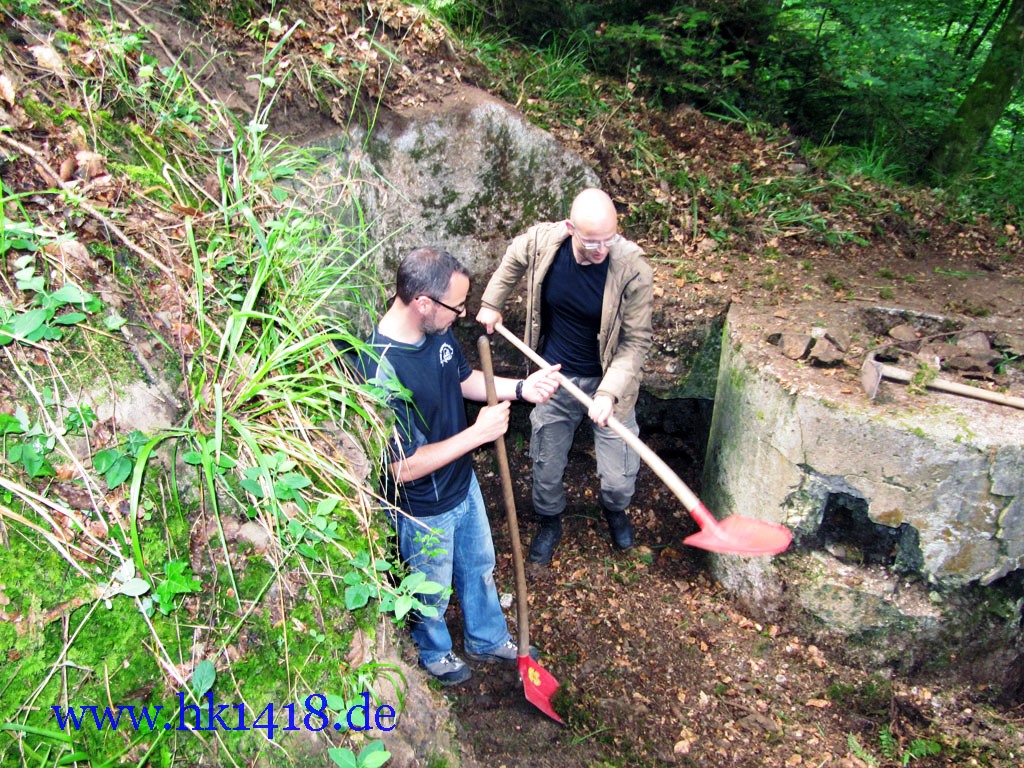 Was nach vielen Jahren leeren Versprechungen der Vorgänger Organisation nie zustand kam, wurde jetzt von Expedition Hartmannsweilerkopf in der Tat umgesetzt. Zum ersten Mal haben wir uns an einem Arbeitstag vom Les Amis du Hartmannswillerkopf eingefunden und kräftig mit angepackt. Auf der Tagesordnung von Robert Lenhardt stand diesmal das Reinigen des MG Bunkers vom Landwehr Infanterie Regiment Nr.124 am Zimmermannskreuz.