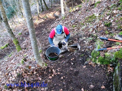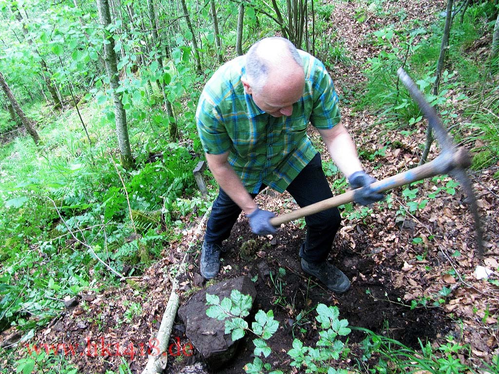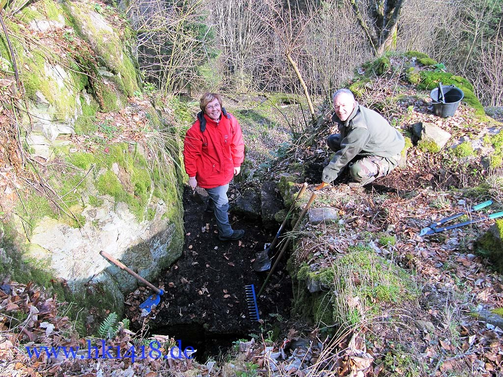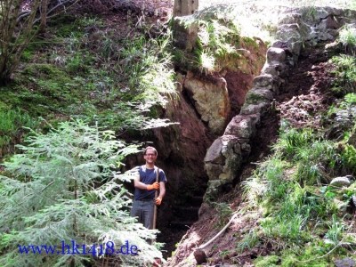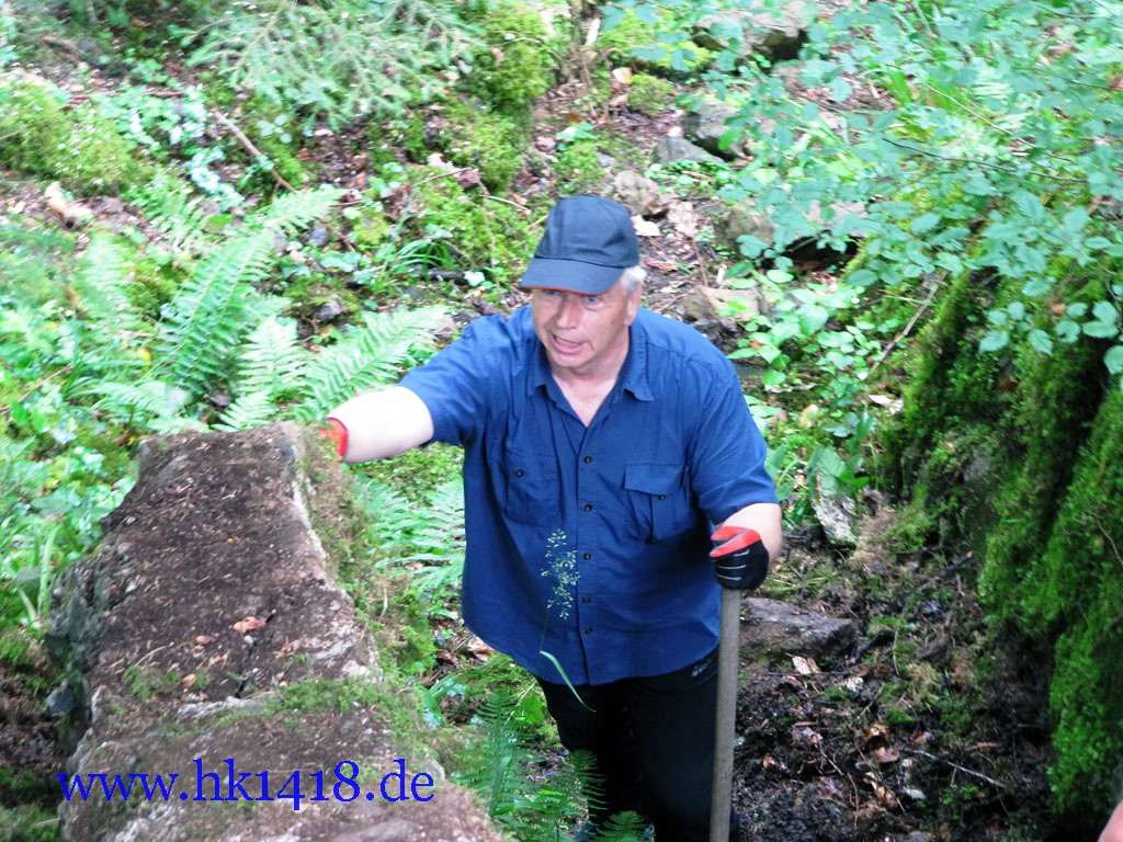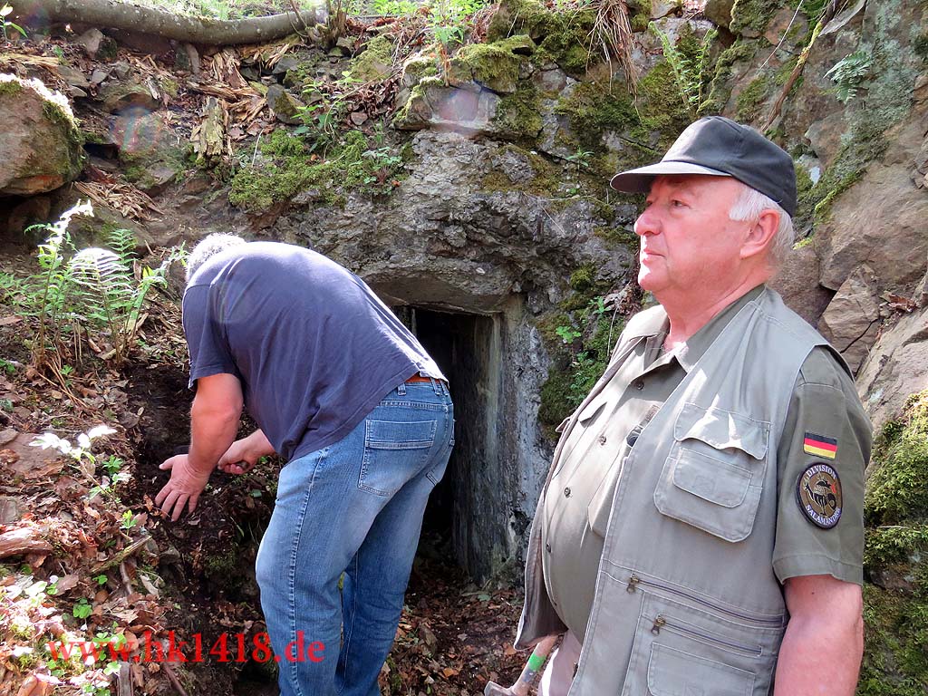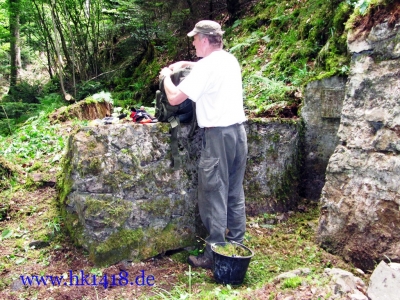Was nach vielen Jahren leeren Versprechungen der Vorgänger Organisation nie zustand kam, wurde jetzt von Expedition Hartmannsweilerkopf in der Tat umgesetzt. Zum ersten Mal haben wir uns an einem Arbeitstag vom Les Amis du Hartmannswillerkopf eingefunden und kräftig mit angepackt. Auf der Tagesordnung von Robert Lenhardt stand diesmal das Reinigen des MG Bunkers vom Landwehr Infanterie Regiment Nr.124 am Zimmermannskreuz.