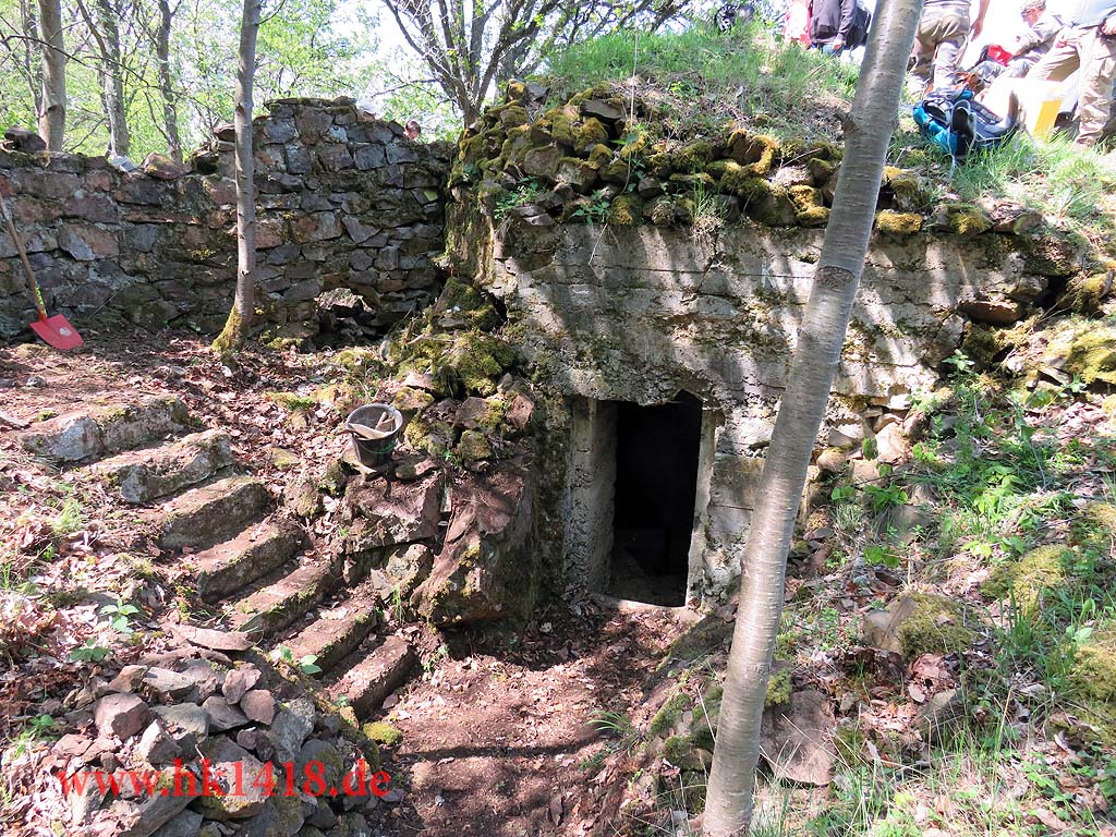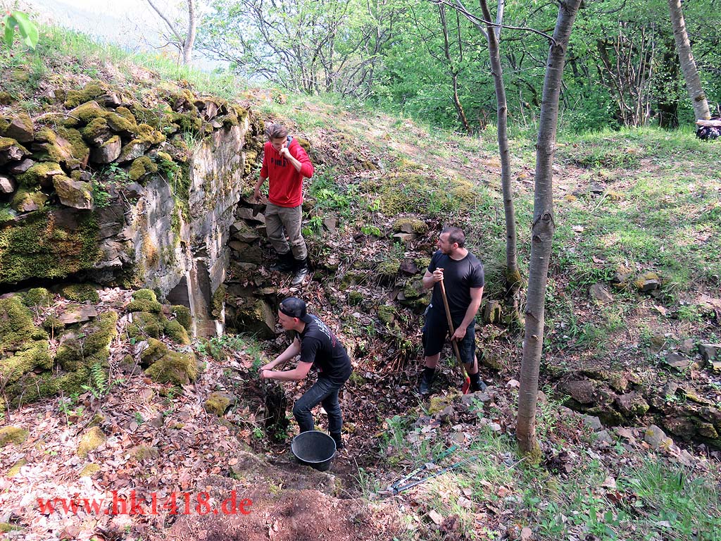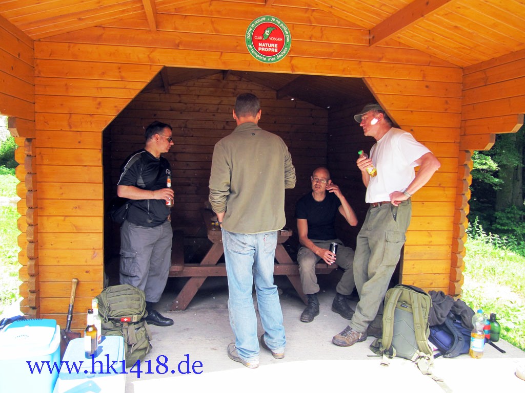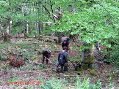Zum diesjährigen Arbeitseinsatz trafen wir uns in Hartmannswiller am Hotel Meyer. Von dort aus sind wir mit unseren Truppentransporter – einem schweizer Pinzgauer – an die Kurve 5 gefahren und haben dort dann die Kantine des Landwehr-Infanterieregiments Nr.124 bearbeitet. Mit unseren französischen Freunden Benjamin und Robert hatten wir sehr viel Spaß, Motivation und ein tolles Ergebnis erreicht. Ein Dank an alle Helfer.