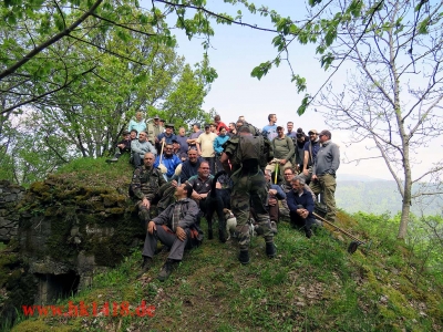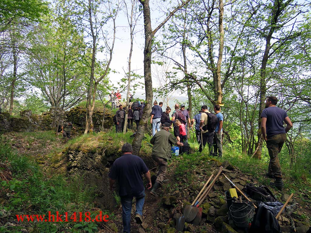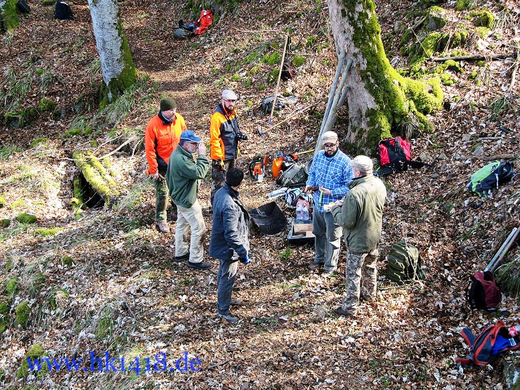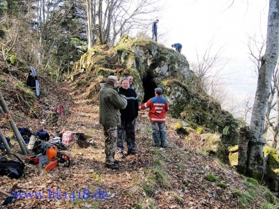 Was für ein Arbeitseinsatz!!! Mit ca. 30 Personen wurde am Kardinalsfelsen und am Pabststuhl gearbeitet. Es ist einfach überwältigend, dass sich dem diesjährigen Arbeitseinsatz der Les Amis du Hartmannswillerkopf und Expedition Hartmannsweilerkopf so viele Leute angeschlossen haben. Zum ersten Mal wurde der Arbeitseinsatz auf Facebook ausgeschrieben (in der Gruppe „Freunde des Hartmannsweilerkopf“), um zu erreichen, dass sich die Facebookfreunde auch einmal persönlich kennen lernen. Und das wurde auch erreicht! Die Leute kamen aus Österreich, Schweiz, Deutschland und Frankreich.