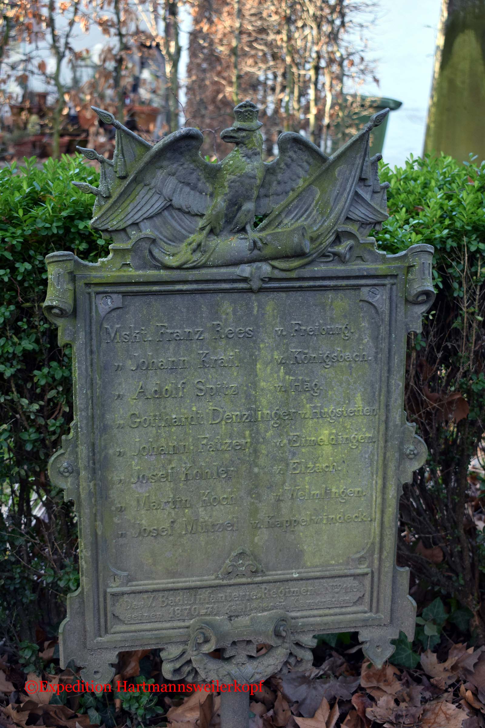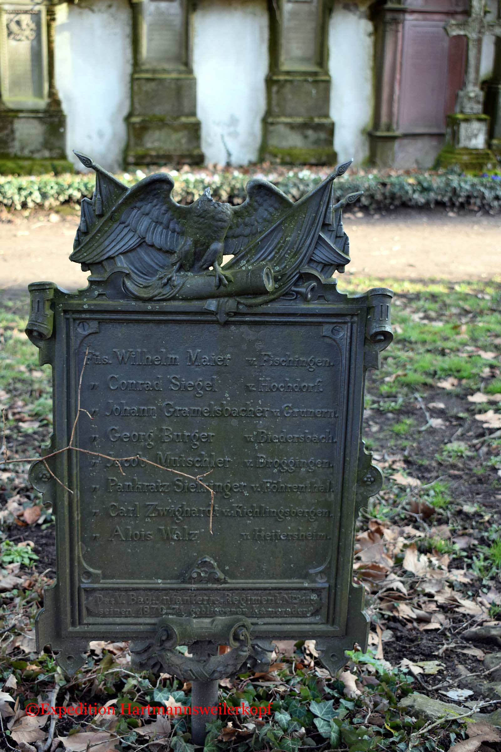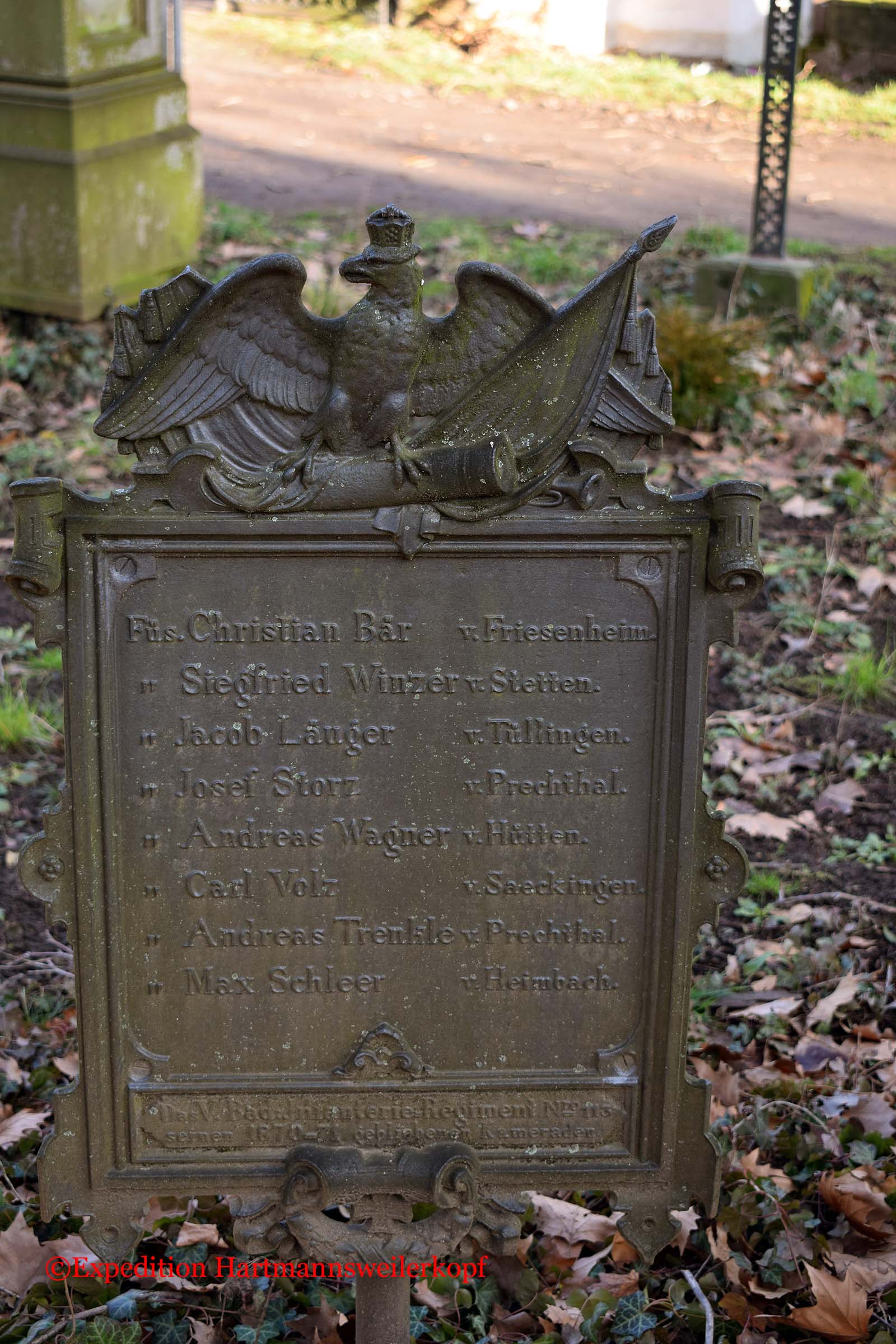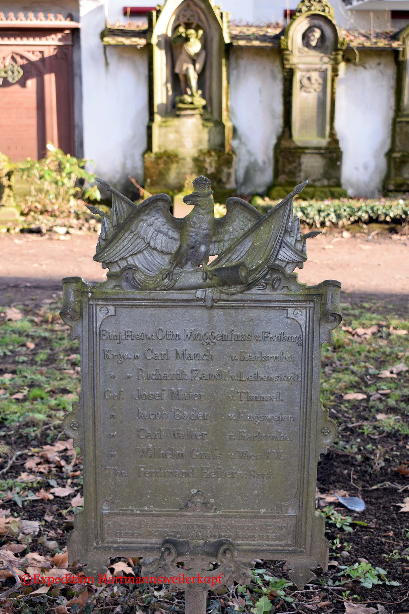 In Freiburg im Breisgau, befindet sich auf einem sehr alten Friedhof (von ca. 1680 bis 1890, steht unter Naturschutz) ein Friedhof der gefallenen Soldaten im Krieg 1870/71. Nicht nur das Soldatendenkmal ist sehenswert, sondern der ganze Friedhof selber, mit seinen uralten Grabstätten.