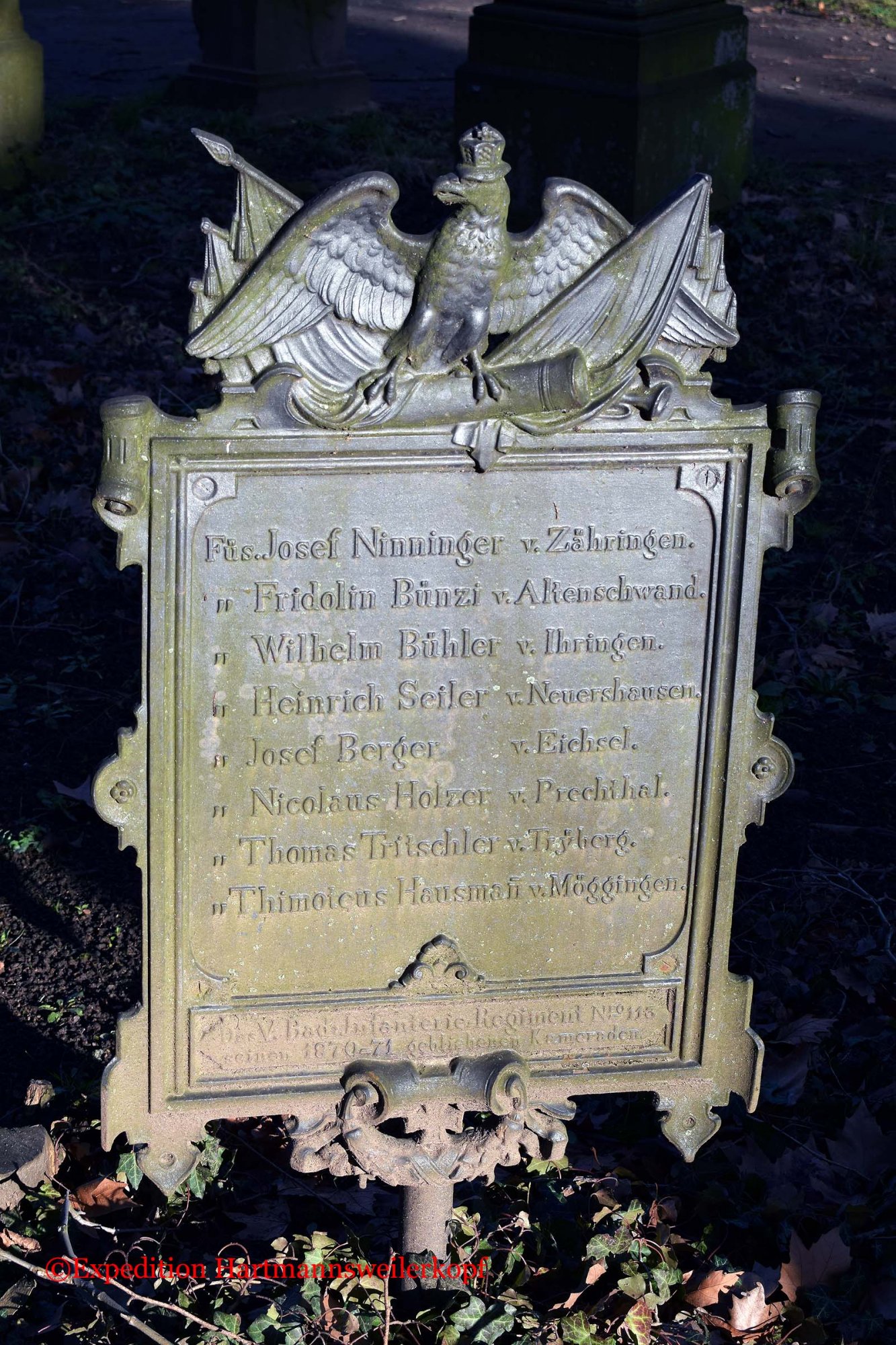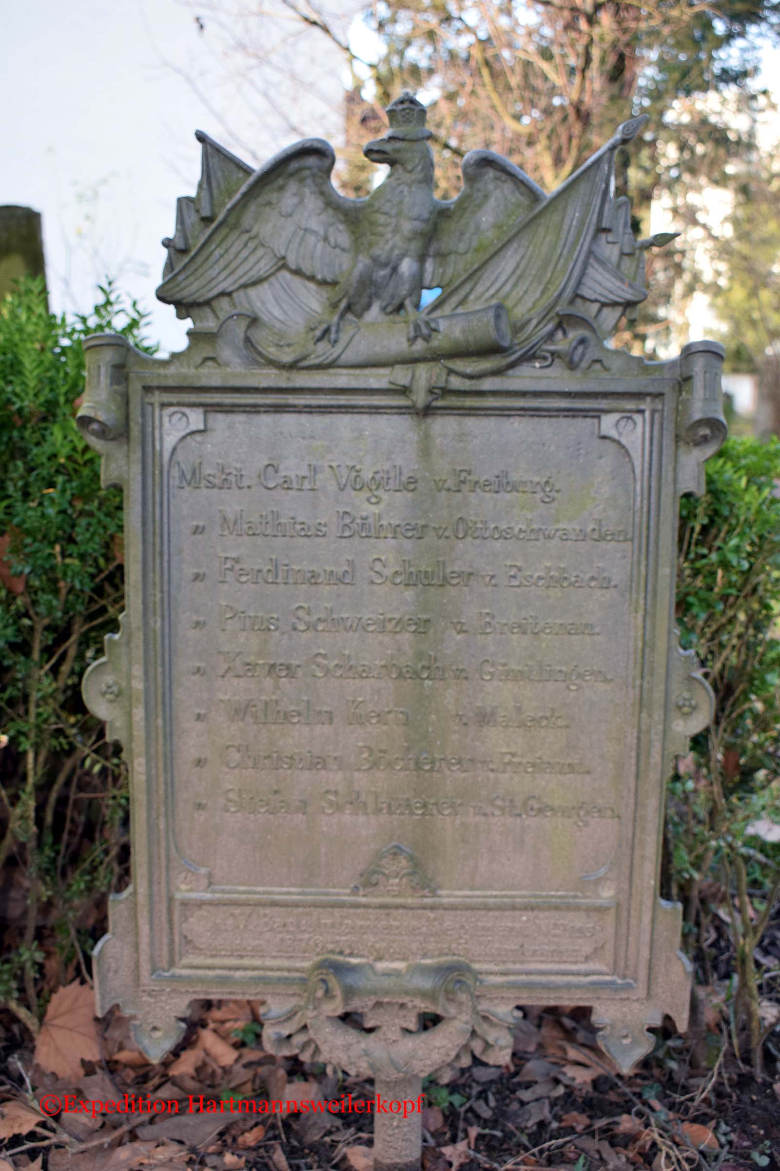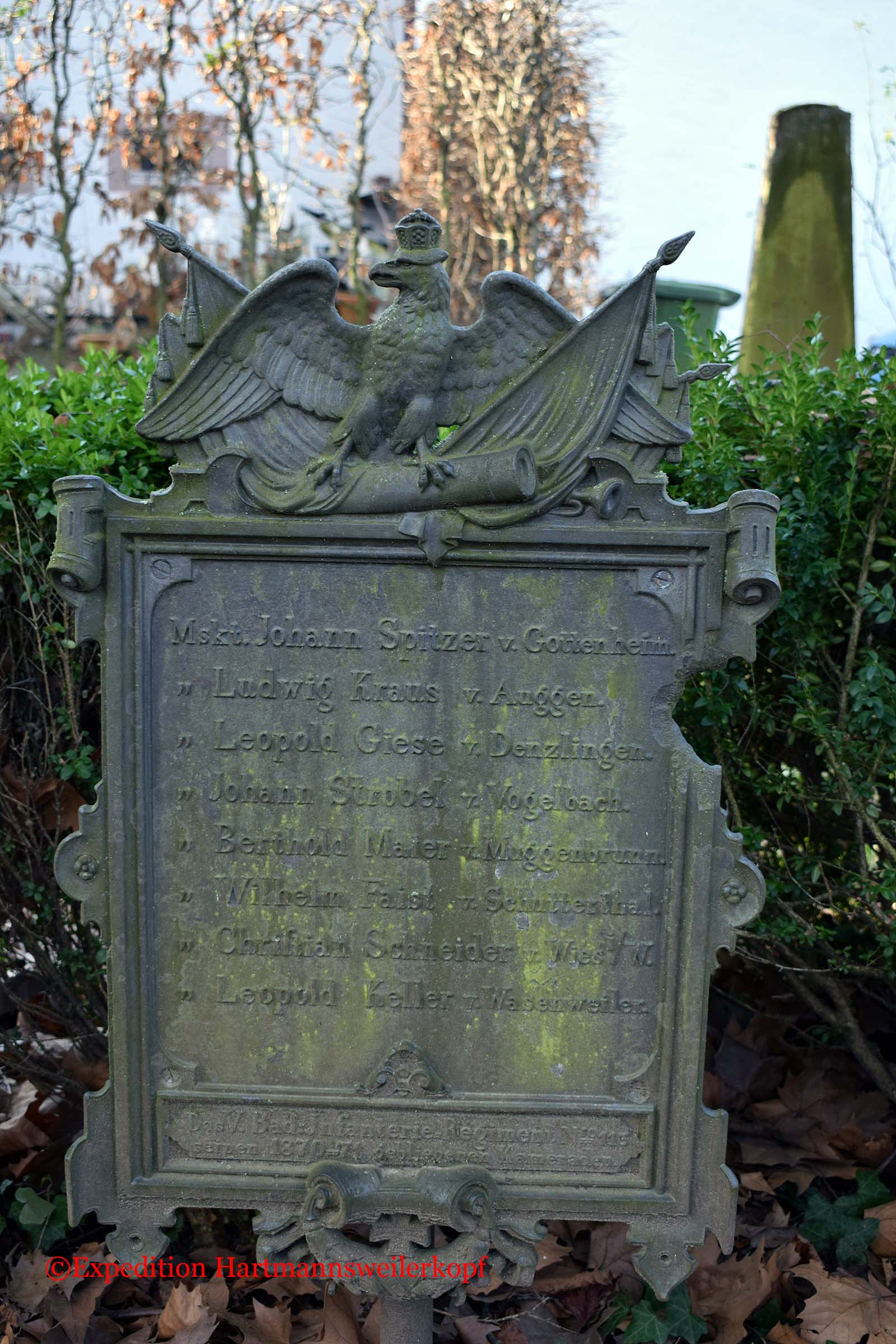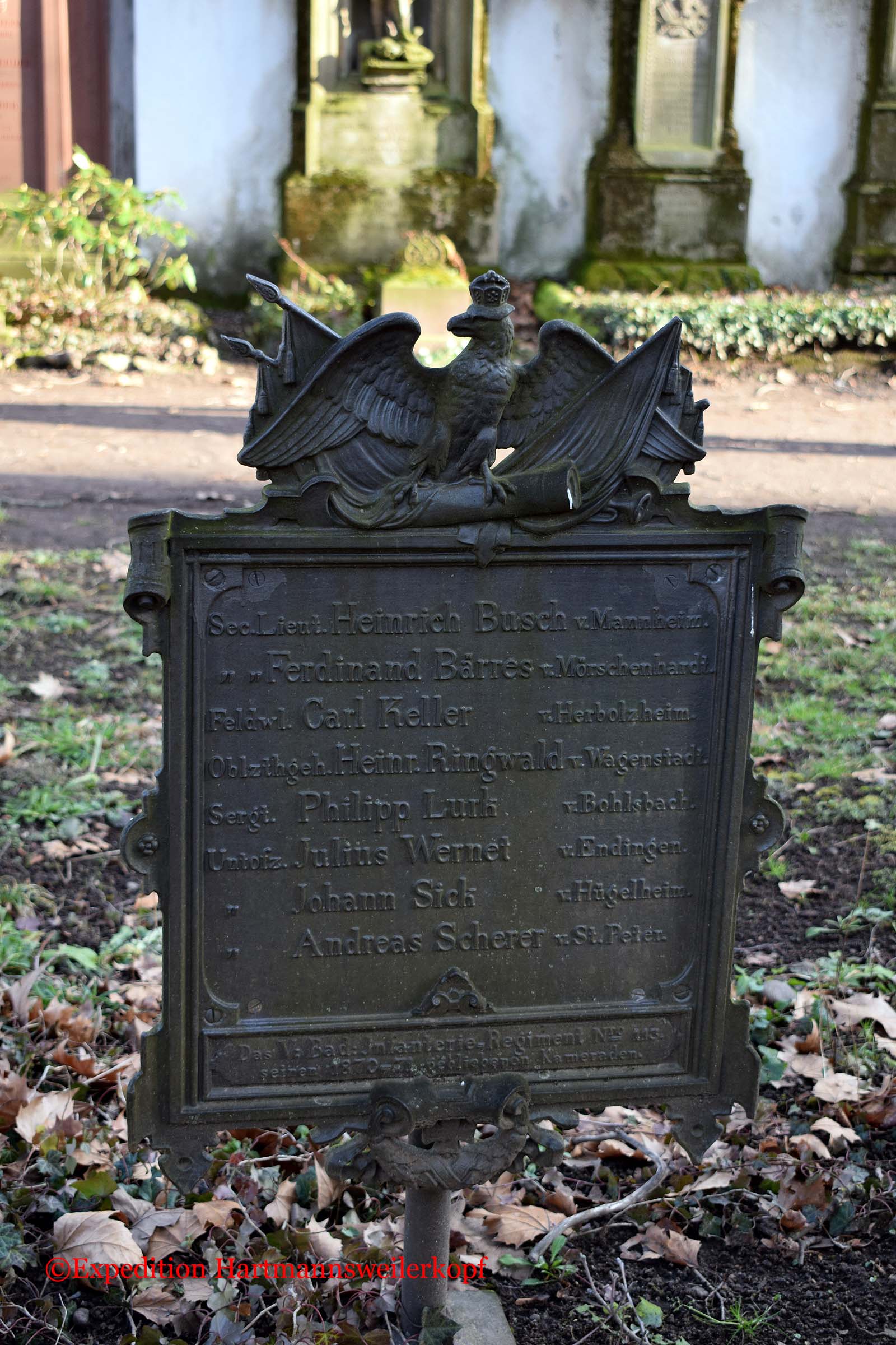 In Freiburg im Breisgau, befindet sich auf einem sehr alten Friedhof (von ca. 1680 bis 1890, steht unter Naturschutz) ein Friedhof der gefallenen Soldaten im Krieg 1870/71. Nicht nur das Soldatendenkmal ist sehenswert, sondern der ganze Friedhof selber, mit seinen uralten Grabstätten.